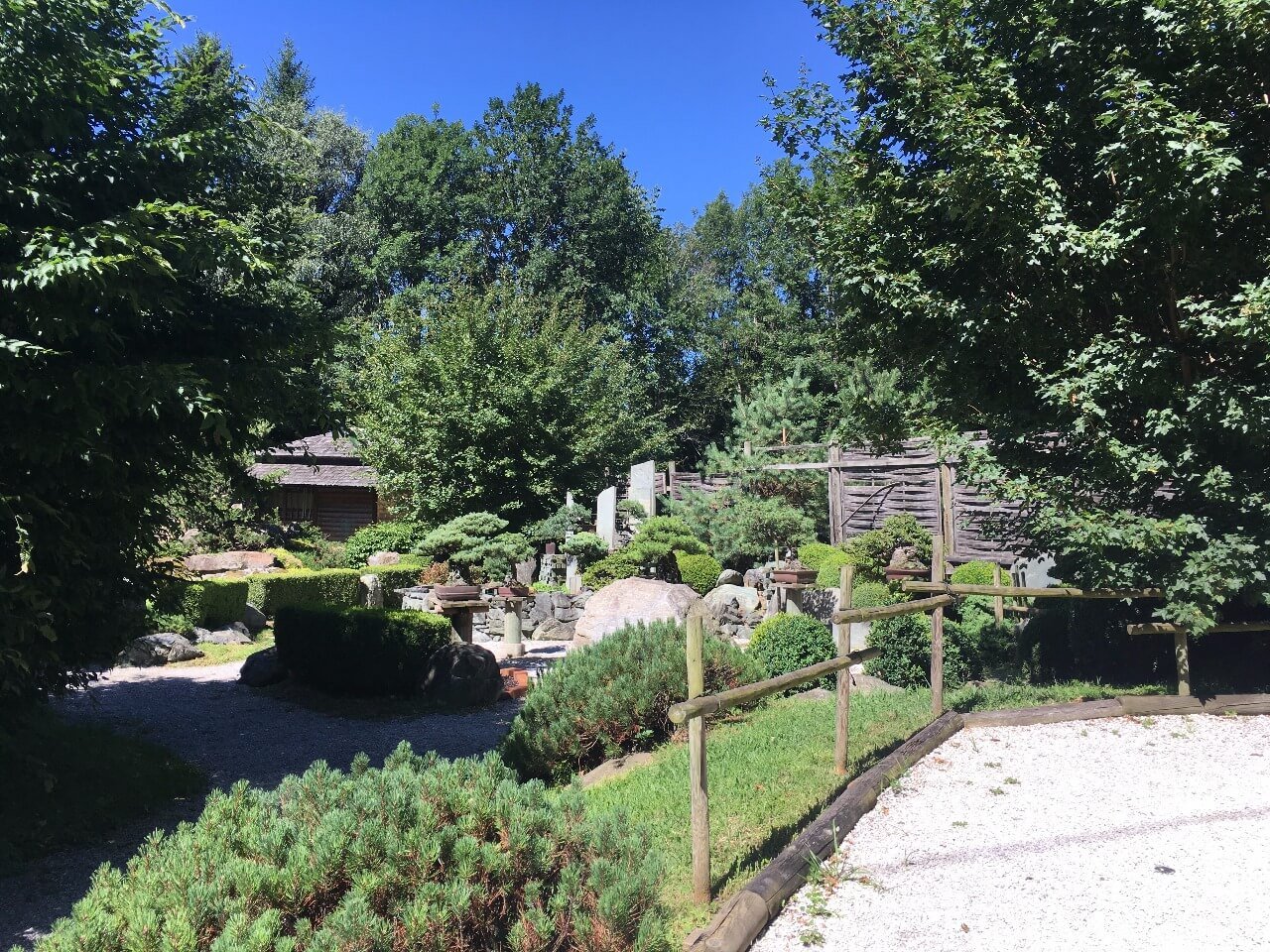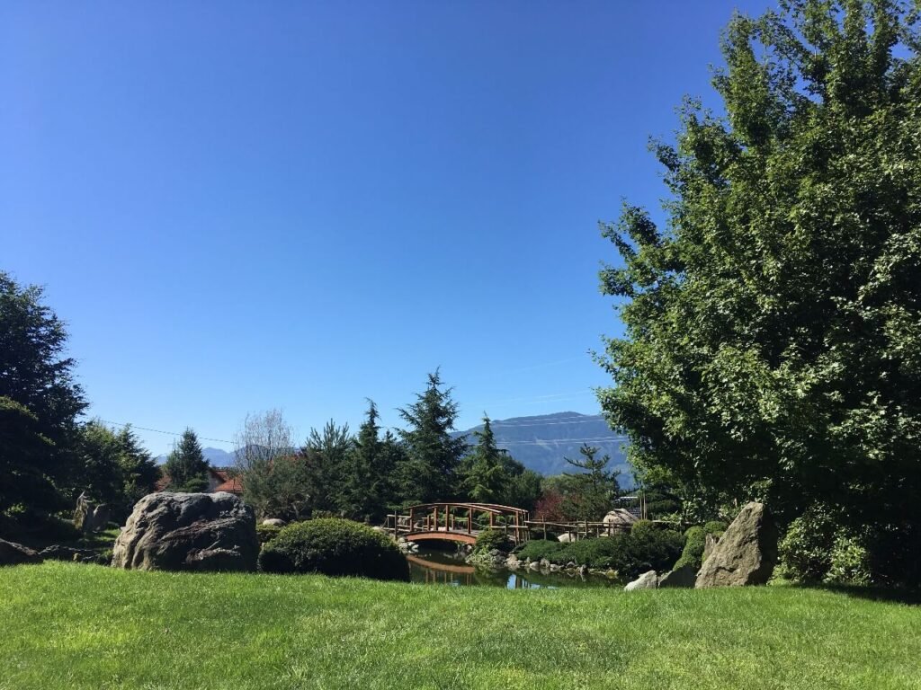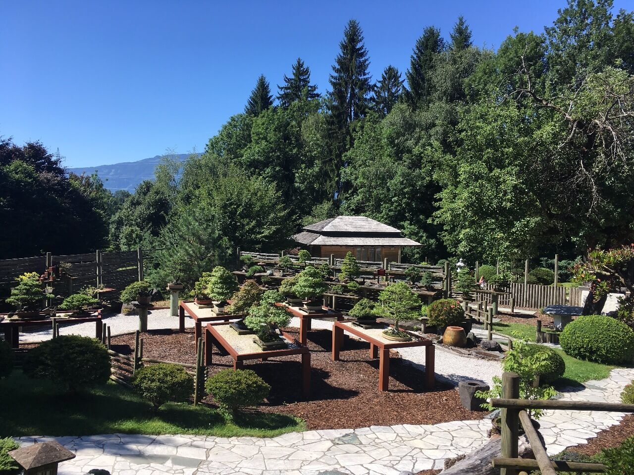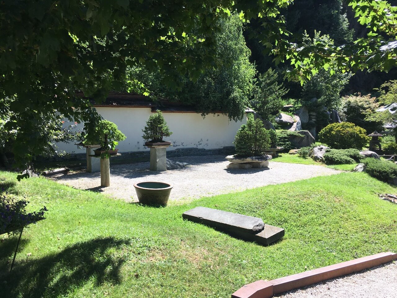 Po vstupu na vás okamžitě dýchne klidná atmosféra a otevře se výhled na pečlivě udržovanou zahradu s desítkami bonsají a květin. Najdete tu jezírka, lavičky i upravené cestičky, které lákají k pomalé procházce nebo jen k posezení a nasávání energie místa.