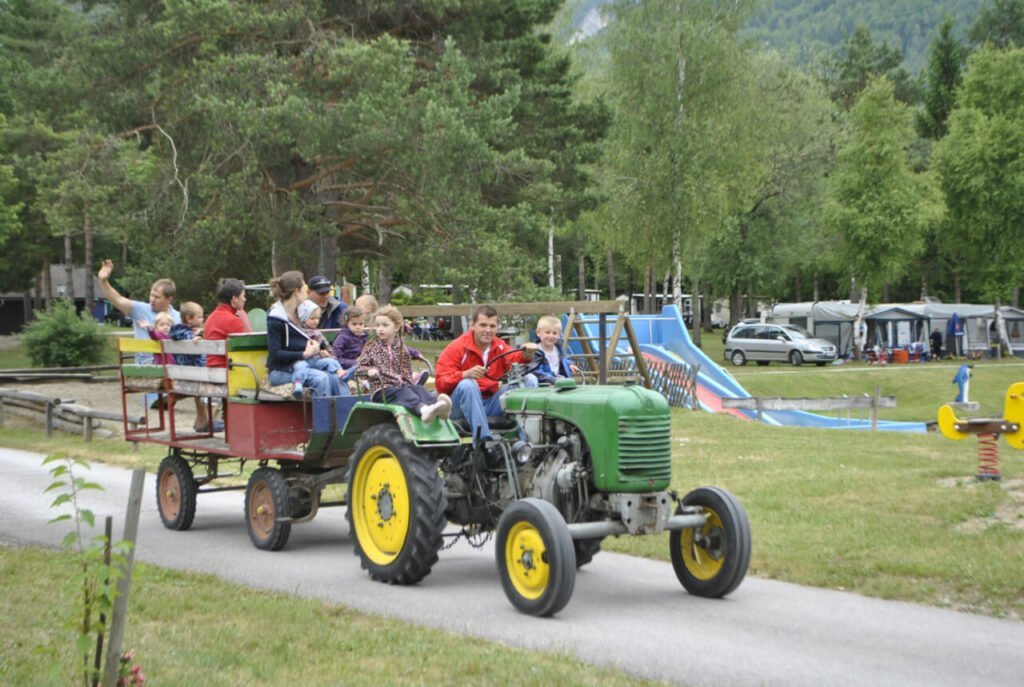 Tip: Každý večer přijíždí místní údržbář s traktorem a zdarma vozí děti i dospělé na okružní jízdě kolem celého kempu 🚜.