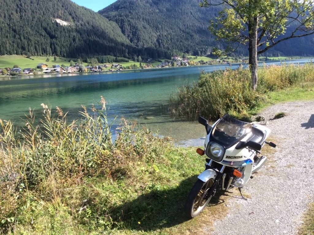 Výlet začíná v Hermagoru, odkud zamíříte přes Kreuzbergpass k jezeru Weissensee. Tahle silnice vás nadchne – dlouhé táhlé zatáčky, perfektní asfalt a široký profil. Jen pozor na parkování u jezera, pro větší skupiny motorek je trochu komplikované.