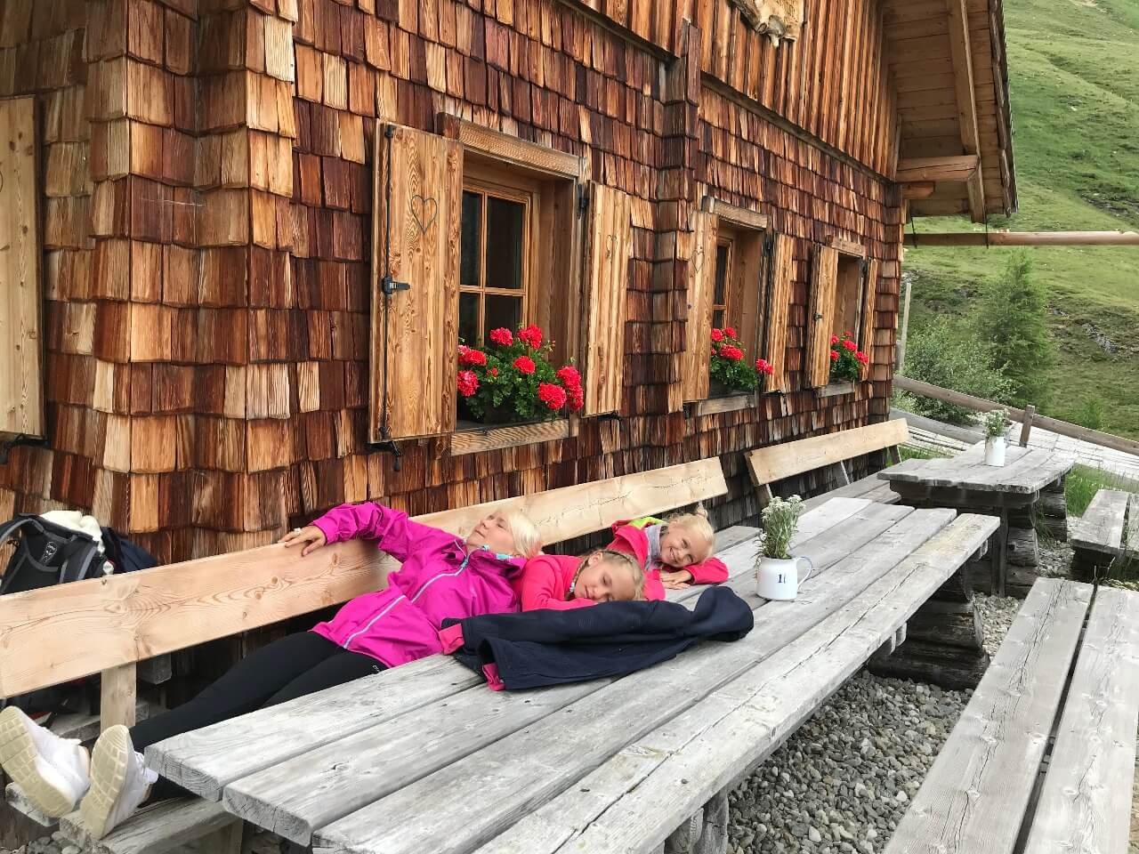Z chaty vede cesta dál k jezerům Lanischsee, ale i v polovině července jsme tu narazili na sníh, takže s malými dětmi to není vhodné. My se tam určitě ještě jednou vrátíme.