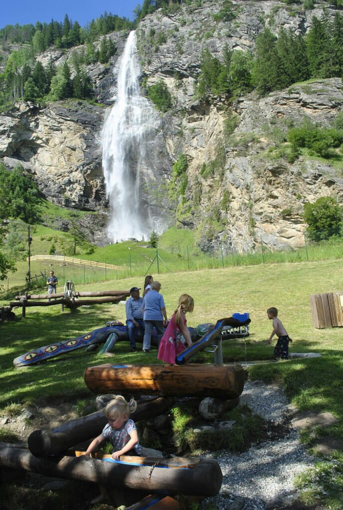 Na úpatí 200 m vysokého vodopádu Fallbach najdete velký zážitkový park pro děti – prolézačky, tunely, vodní hry, skluzavky i spoustu prostoru na piknik. Celý areál je oplocený, takže si děti mohou hrát v bezpečí a vy si zatím odpočinout na dece nebo v přístřešku.
