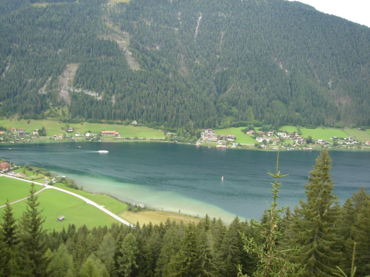 Po cestě zpět doporučuju udělat si zastávku u jezera Weissensee. Je to perfektní místo na kafe nebo koupání, s křišťálově čistou vodou a příjemnou atmosférou. Najdete tu i lanovku, které se věnuju v samostatném článku.